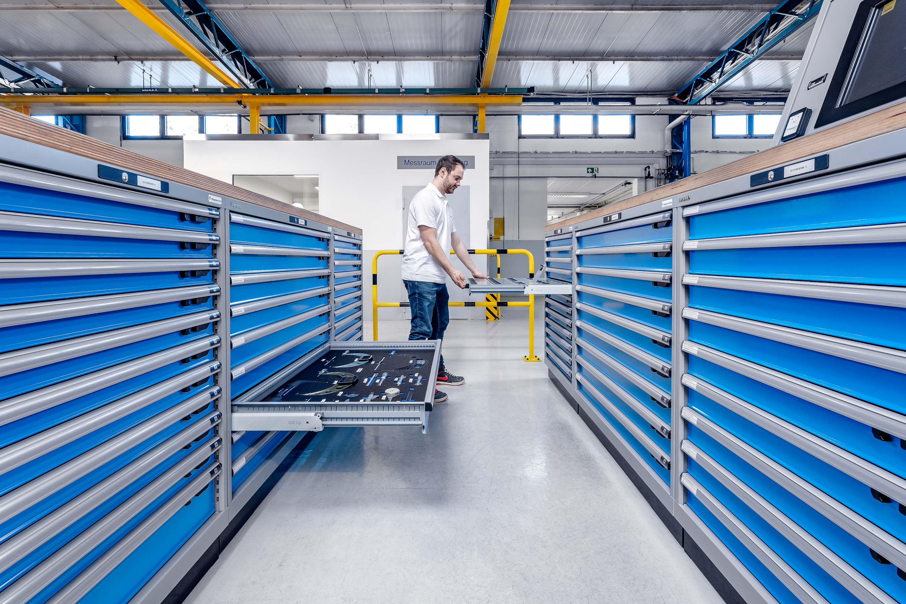 Lösung: Cloudbasierte Softwarelösung von SANDVIK Coromant in Kombination mit einem LISTA-Schubladenautomat mit Klappen und Hartschaumeinlagen.