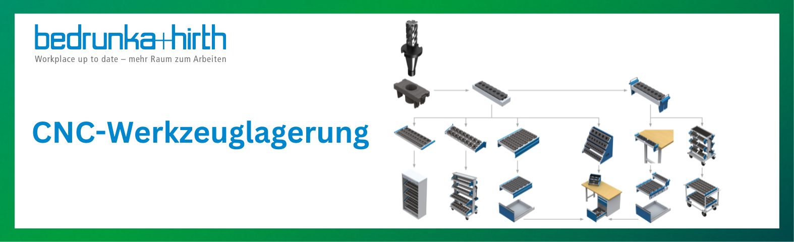 Die CNC-Werkzeuglagerung ist entscheidend für die Effizienz, Qualität, Sicherheit und Kosteneffektivität in der Fertigungsindustrie. Sie trägt wesentlich dazu bei, den gesamten Produktionsprozess zu optimieren und wettbewerbsfähig zu bleiben. Eine Möglichkeit der optimalen und kostengünstigen Werkzeuglagerung ist unser Baukastenprinzip von unserem Partner bedrunka+hirth.