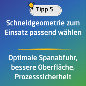 Unser Tipp: Optimale Schnittdaten mit der richtigen Sorte und Geometrie sowie einer angepassten Bearbeitungsstrategie.